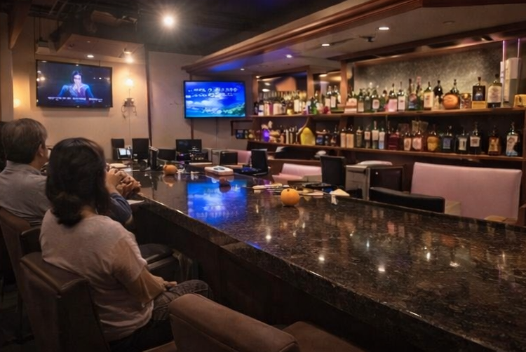 カウンター中心の落ち着いた店内で、お酒とカラオケを楽しめます。